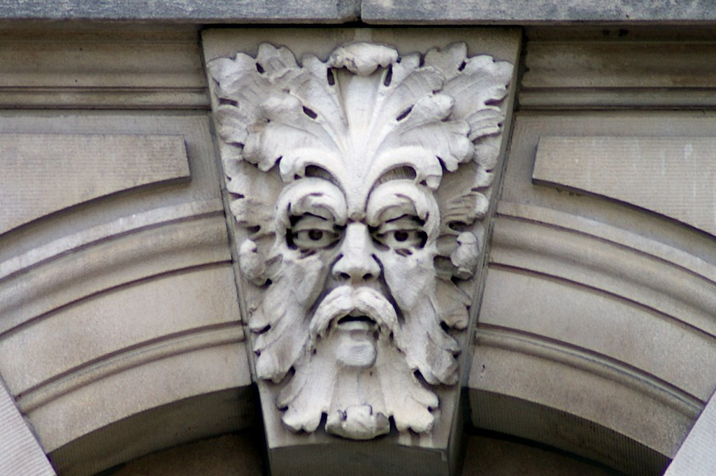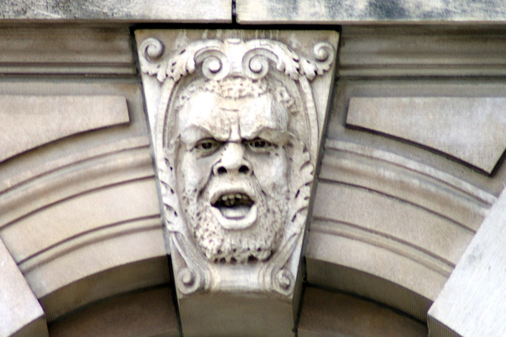 Polk County, Iowa Courthouse, grotesque faces on the window keystones.  About 30 in all.