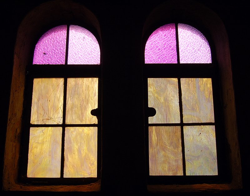 I am a big fan of stained glass windows, The first one seems to be an insignia of sorts.  Any idea what it represents?