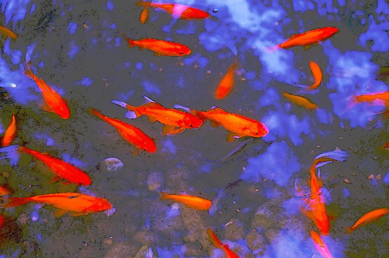 I like the way the fish appear to be swimming through the clouds, instead of under their reflection.