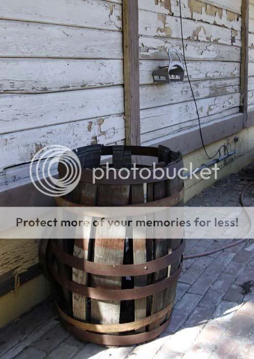 I tend to agree with you, Scotty! Although the brick walk and wall are also pretty weathered looking, the poor barrel looks like he went through a war and lost!  ;)