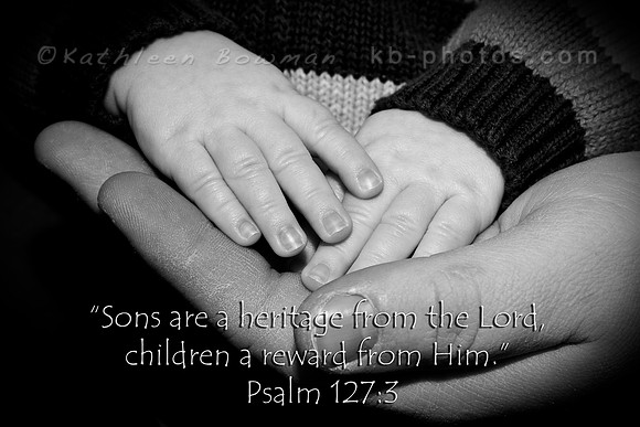 This photo is from one of my rare portrait sittings.  We were only going to do family portraits, but the parents requested one of the baby's hand in daddy's since they had mommy's foot with the baby's.  Here it is after I converted it to black and white and added scripture text...